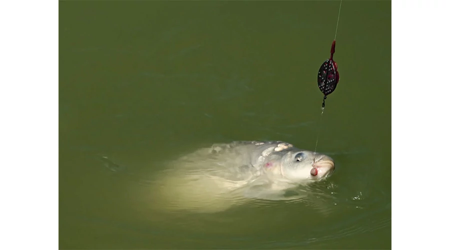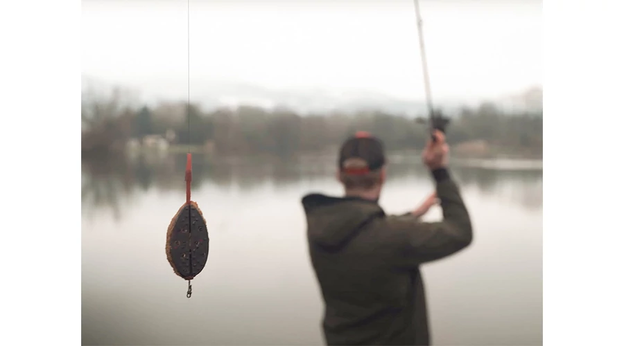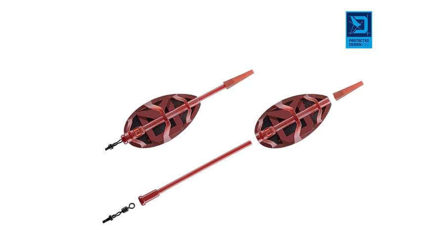 Punc originality dodáva produktu typická bordová farba a čierne závažie fŕkané červenými škvrnami. V základe je krmítko dodávané s rýchlovýmenným obratlíkom s poistkou a gumičkou proti zamotaniu.