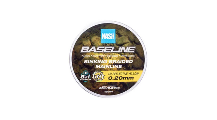 Nash Rybárska Šnúra Baseline Sinking Braid UV Yellow 20lb 0.20mm 1200m